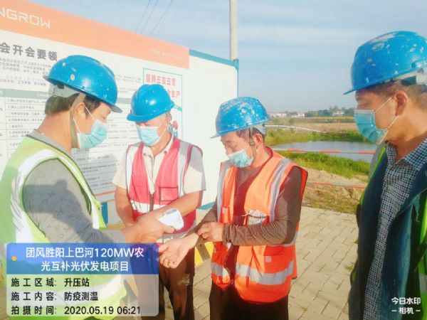 湖北团风项目部每天按时测量体温、消 毒,戴好口罩,做好个人防护。