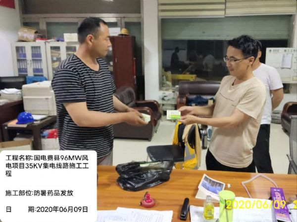 费县风电项目地处山区,紫外线强烈。为了把防暑物资的发放落实到实处,项目部购买了藿香正气水、毛巾、防暑茶、风油精等防暑降温药品及物品。另外,公司安全监察质量部安排人员快速深入一线,了解一线员工的防暑需求。在保障企业正常施工、生活的同时,使得企业愿景及核心价值观得到进一步的体现和升华。