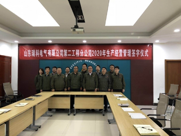 2023-10-13阳春四月,花红柳绿。4月29日山东鲁瑞电力集团有限公司山东瑞科电气有限公司工程分公司、山东瑞科成套有限公司机柜分公司进行了2020年生产经营管理签字仪式,标志着山东瑞科电气有限公司工程分公司和山东瑞科成套电气有限公司机柜分公司正式独立运营,在快速发展的道路上跨出了坚定一步。