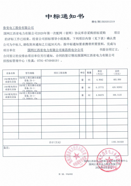 此次中标设备包含了10kV 变压器以及10kV配电变台成套化设备,本次招投标过程中,供应商数量多,均具备不俗实力,竞争异常激烈,我公司可以中标足以证明我公司的综合实力。此次中标再一次巩固了我公司在电力行业的市场地位,为以后的市场开拓打下更坚实的基础。