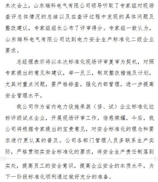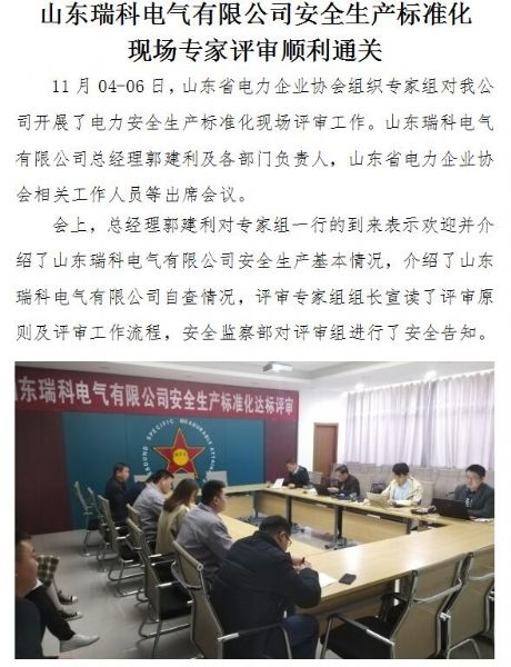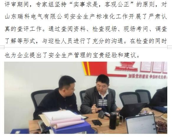 山东瑞科电气有限公司生产标准化现场专家评审顺利通关